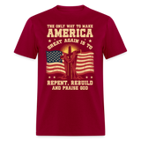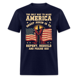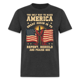The Only Way To Make America Great Again Is To Repent, Rebuild, And Praise God T Shirt