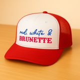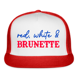 Red White and Brunette Trucker Hat